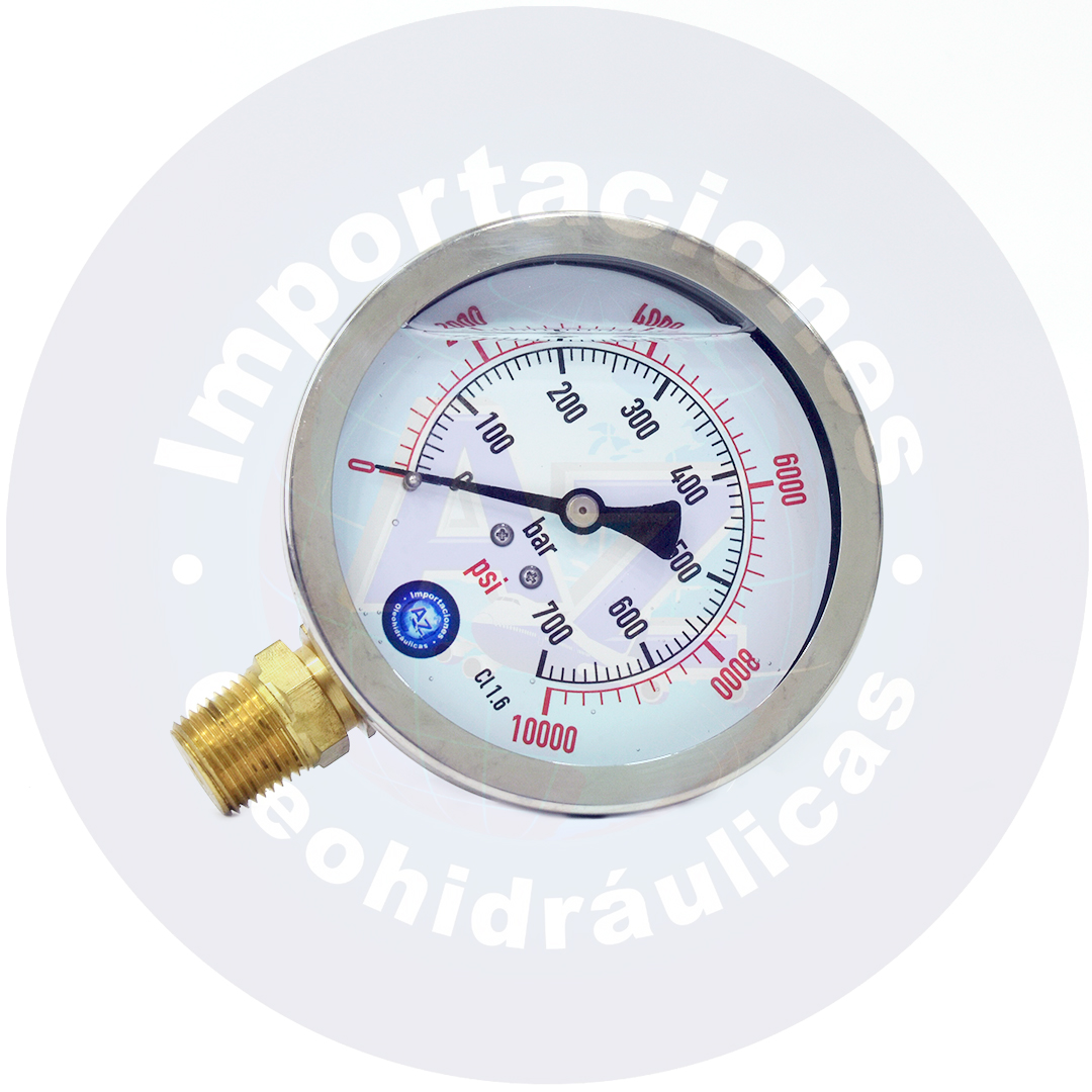 MANOMETRO CON GLICERINA CARATULA 4″ CONEXI?N LATERAL 1/2″ NPT RANGO (0 A 10,000) PSI/BAR REF: 0-10,000 PSI – COD:009111